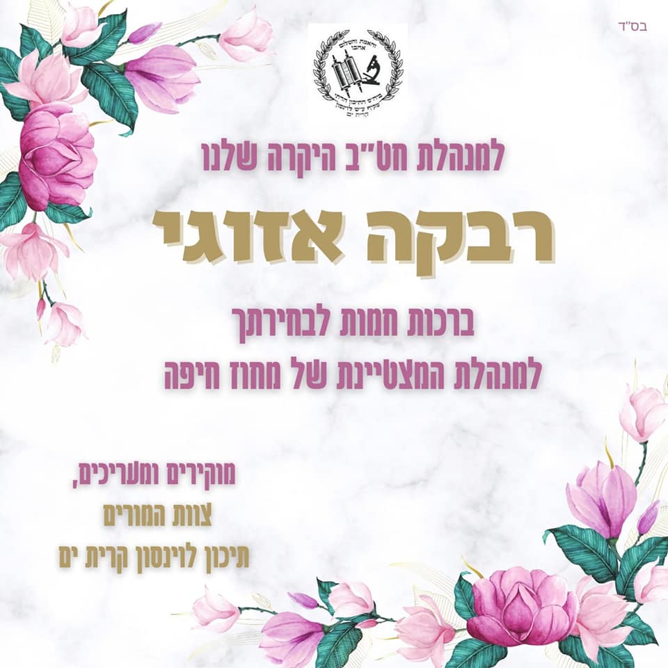 מנהלת חט"ב רבקה אזוגי נבחרה למנהלת המצטיינת של מחוז חיפה. ברכות והתרגשות