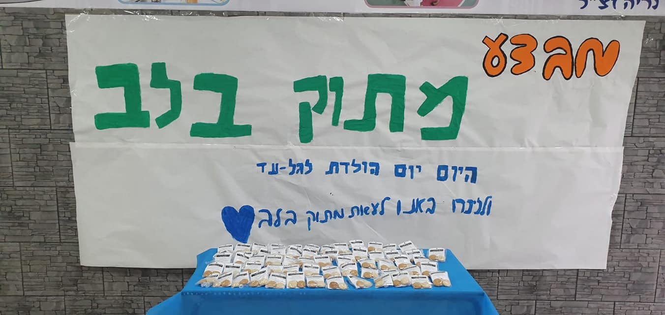 מבצע 'מתוק בלב' – יום הולדת של גילעד שער הי"ד צוות פנים של מועצת תלמידים חילק לתלמידי ביהס מארז אישי